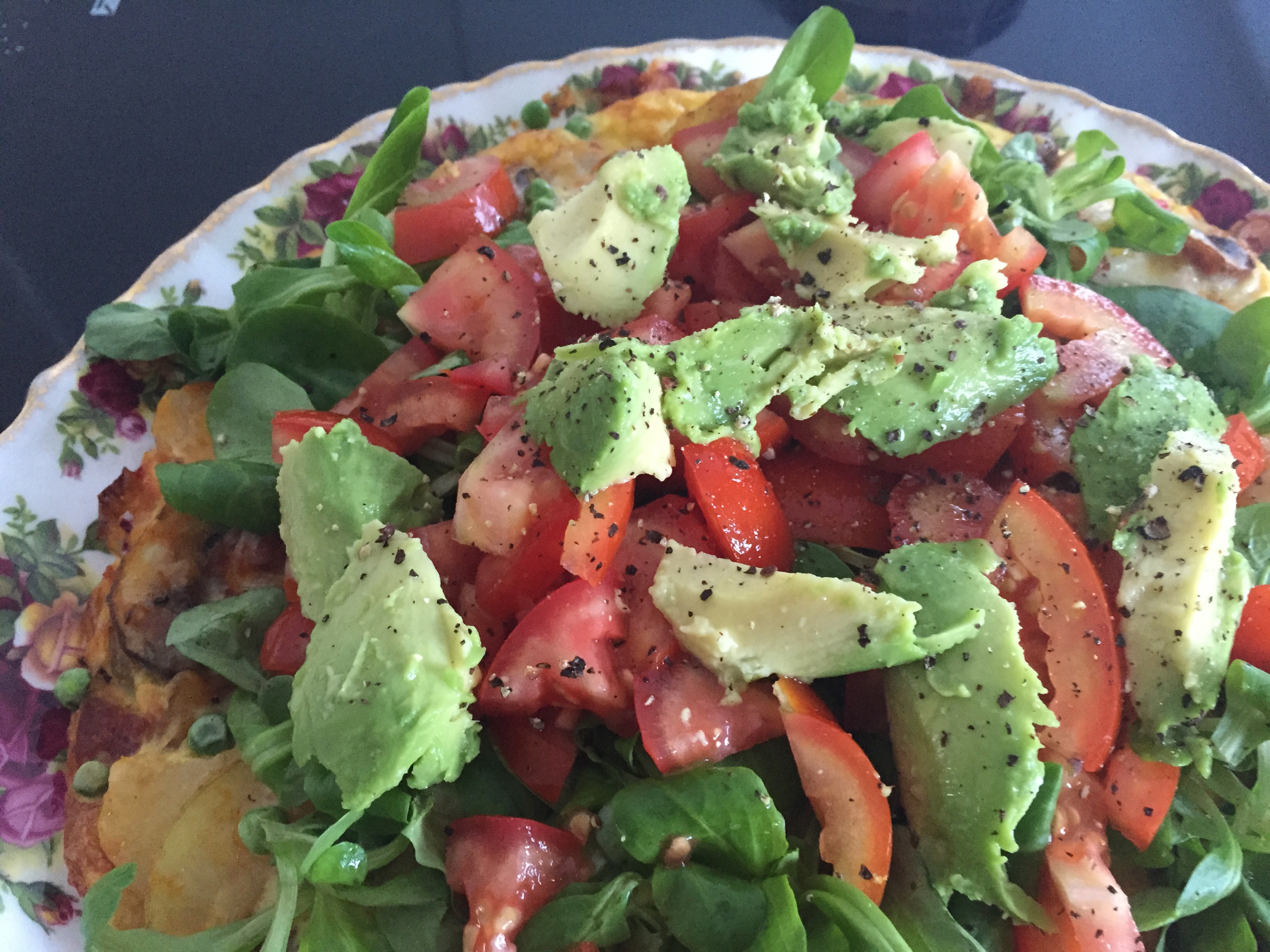 This is a Spanish frittata with a summery salad topping, I’ve given some optional extras depending on how much veg you have in and whether you want to make it vegescarian, meaty or fishy! You’ll need a really good non-stick pan for this dish.