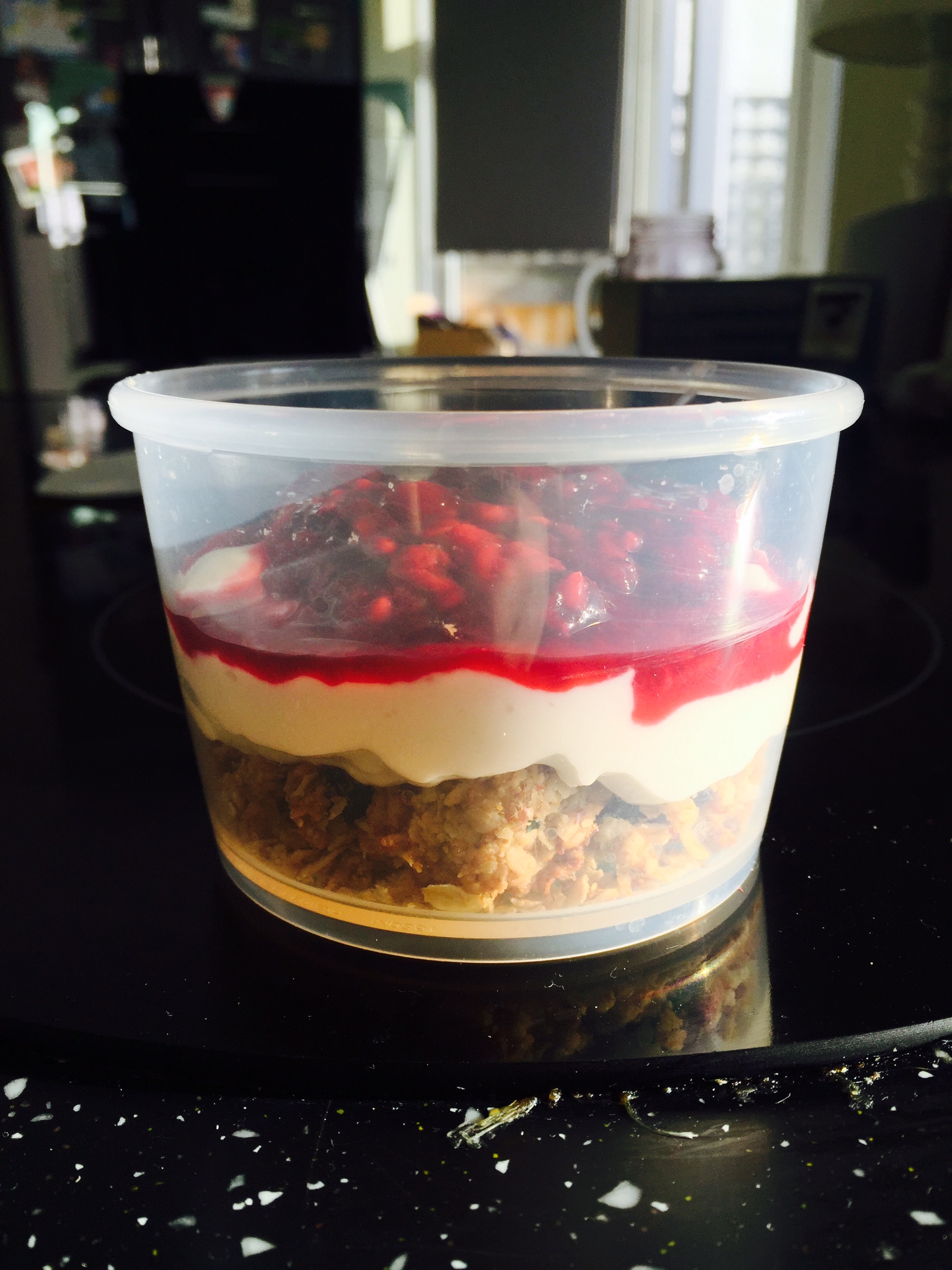 Apricot Granola with natural yoghurt and frozen berry compote