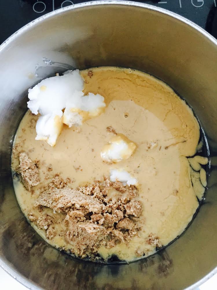 On a low heat, melt all the ingredients except for the sea salt together. stirring regularly.